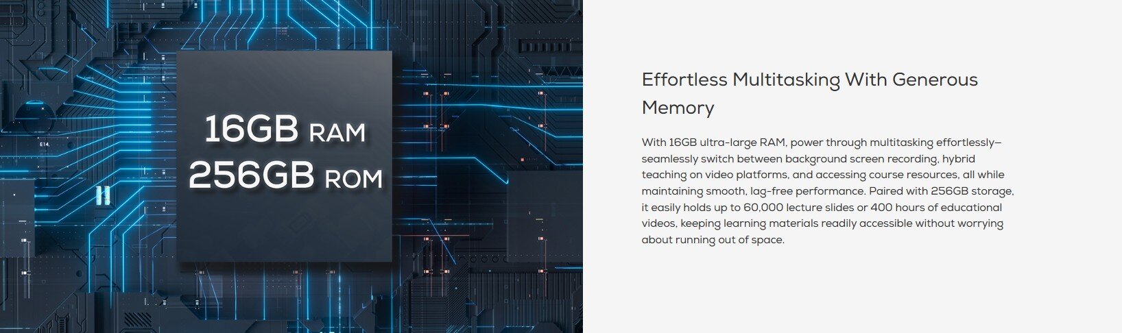 ![]() | Facial Recognition Make every classroom session more engaging and efficient with smart facial recognition. The camera captures the classroom in real-time, identifies students, calculates attendance, and even randomly selects participants to add an element of surprise and fun to lessons. Whether it’s tracking attendance, answering questions, or participating in interactive activities, this feature keeps students attentive while simplifying classroom management for teachers. | ![]() | BYOD With BYOD (Bring-Your-Own-Device), you can seamlessly connect your personal device to the display using a Wireless Dongle, MAXHUB Connect software, or a USB-C cable. Leverage the display’s advanced camera, microphone, and speakers for an unparalleled collaboration experience. |