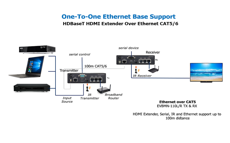 HDMI HDBaseT Extender with ETHERNET 4K2KHDMI HDBaseT EXTENDER with ETHERNET One-To-One Direct Connection (Ethernet Broadband Support) RM 2,374.00 EVBMN-110L/R (TX) Support 100m Distance | MODEL | TRANSMITTER (TX) | RECEIVER (RX) |