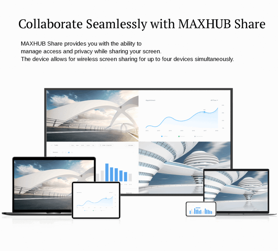 MAXHUB CMA Series The Google Ecosystem Wireless screen sharing up to 4 devices simultaneously. Choose from screen sizes 43", 55", 65", 75", 86" and 98" to meet your application needs | MaxHub Commercial Display CMA Series The combination of 4K UHD resolution and high brightness ensures true-to-life detail. ![]() | ||||||